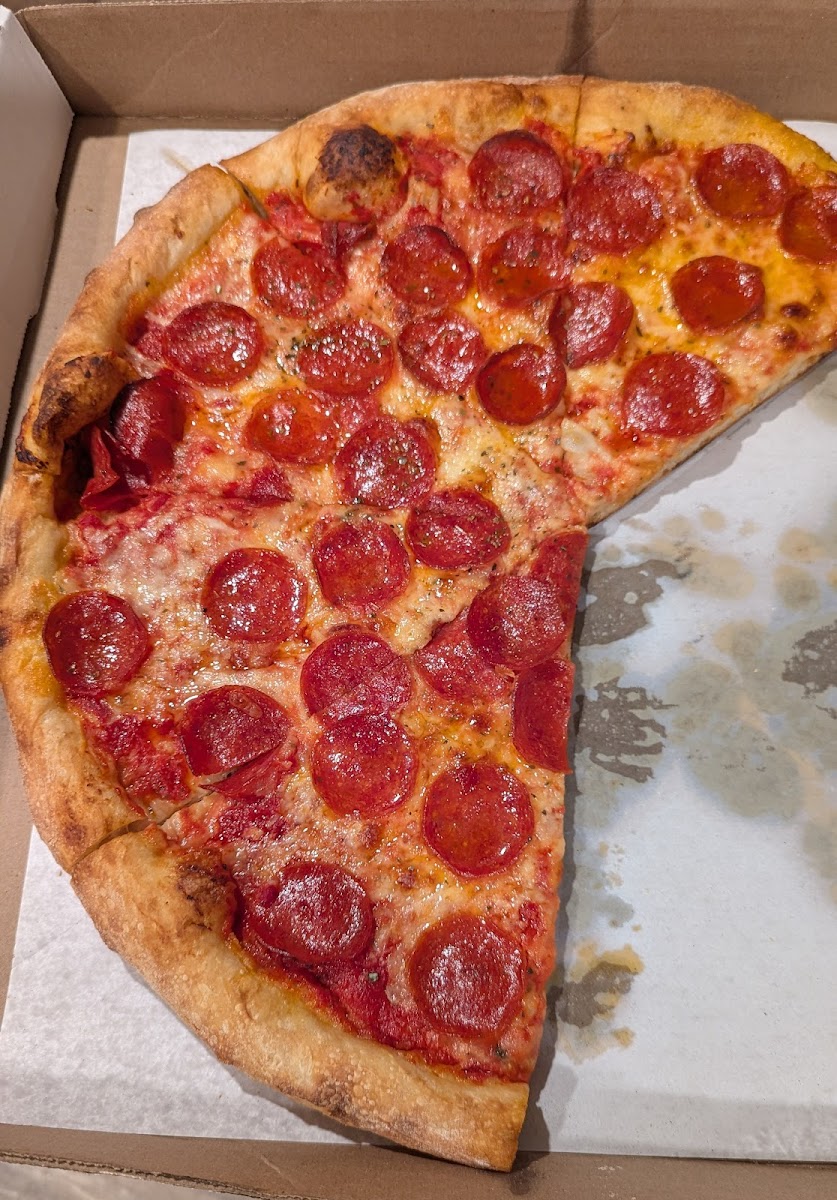 You're not here for the ambiance or the setting. You are here for truly outstanding Pizza. The crust is light and fluffy, with a great crunch. I don't even like plain pizza and I would eat two more slices.